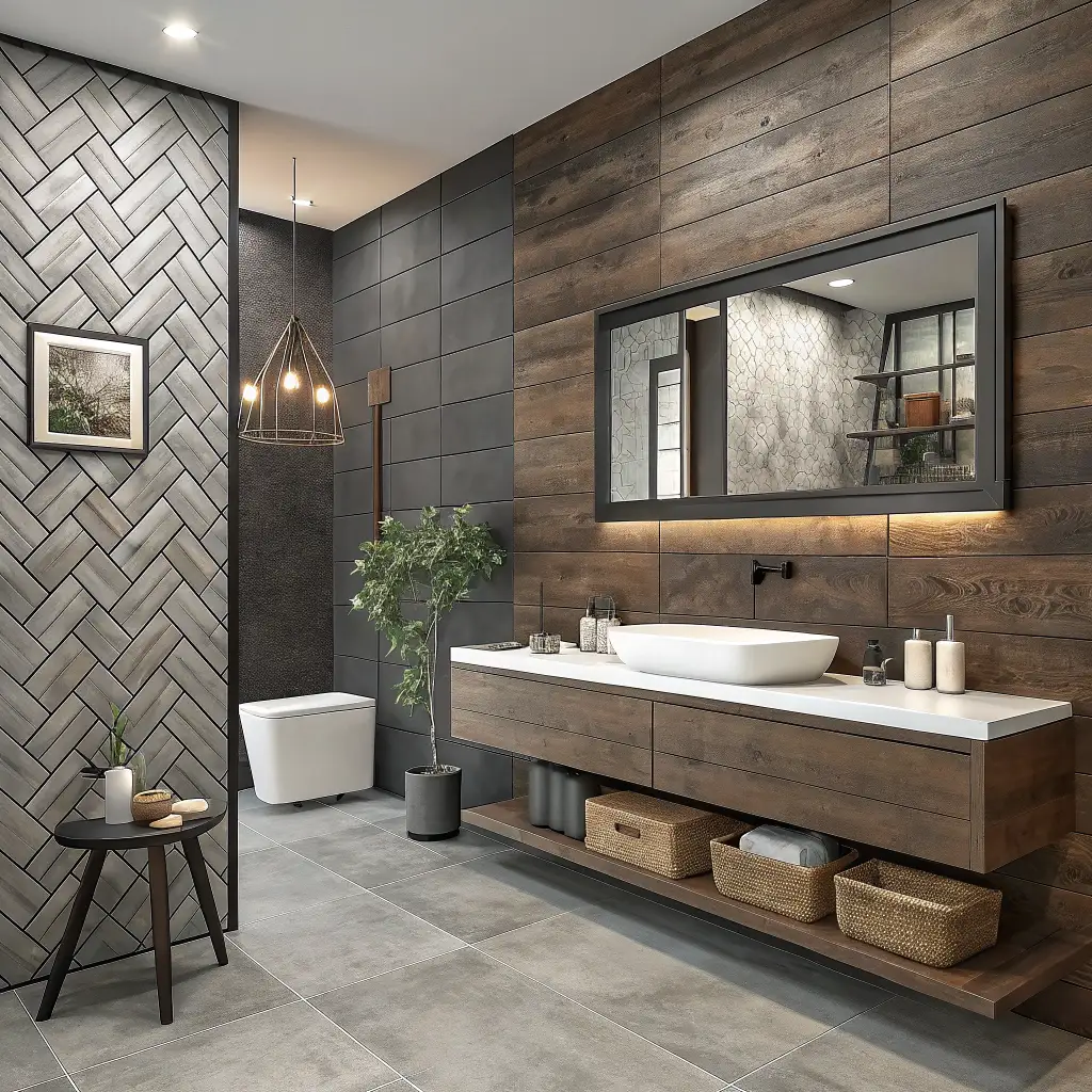 The 2026 aesthetic gravitates toward moody sophistication: charcoal subway tiles establishing rhythm against brass hardware that bears the perfect patina of intentional aging, floating vanities in rich walnut creating the illusion of weightlessness while concealing mechanical necessities, and statement lighting—Edison bulb installations or geometric sconces—that elevate the quotidian grooming ritual into something approaching ceremony.
