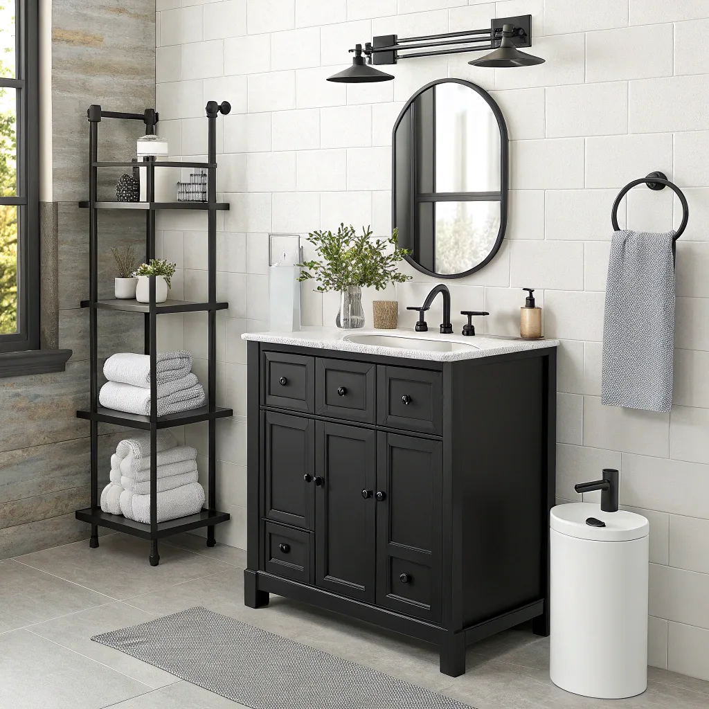 Contemporary vanities integrate abundant concealed storage behind clean, minimalist exteriors. Floating designs create visual lightness while facilitating floor cleaning. Materials should echo your broader aesthetic: dark wood for warmth, industrial metal frames for edge, or high-pressure laminate in concrete patterns for urban sophistication. Integrated electrical outlets, interior lighting, and organizational inserts transform these pieces from furniture into systems.