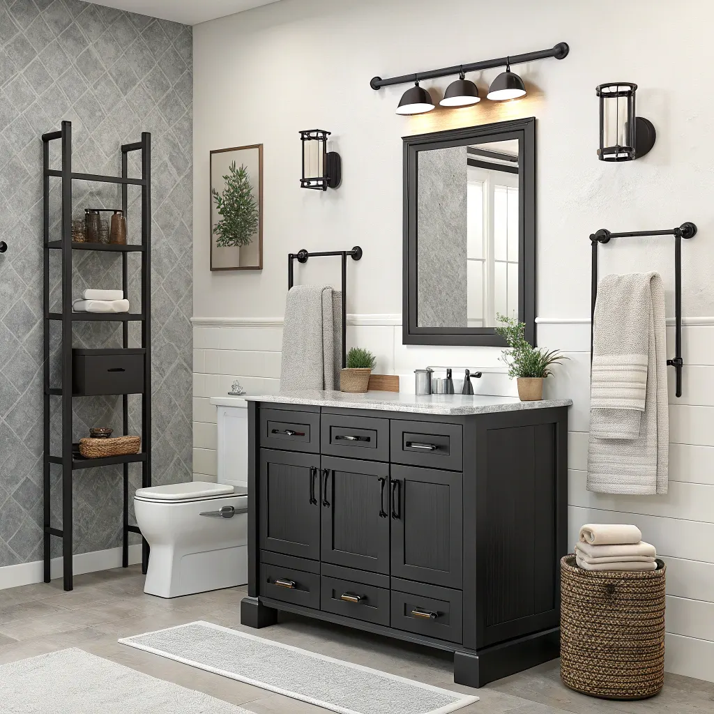 Every visible element—towel bars, robe hooks, toilet paper holders, cabinet pulls—should share unified finish and design language. This consistency creates visual harmony that feels intentional rather than accidental. Matte black, brushed nickel, or gunmetal finishes maintain contemporary edge while offering practical durability.