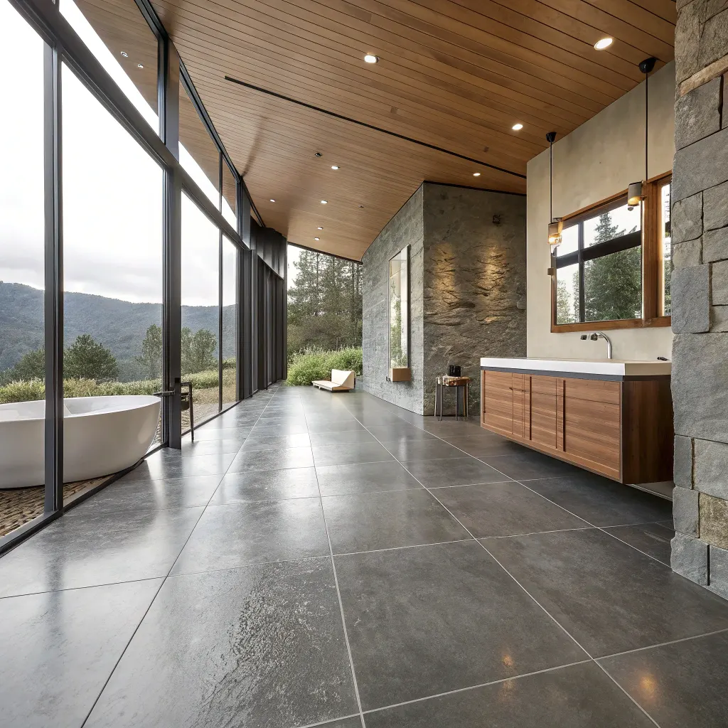Polished concrete delivers industrial authenticity with surprising sophistication, its surface catching and reflecting light while maintaining slip resistance through proper finishing techniques. Large-format tiles in charcoal, slate, or graphite minimize grout lines, creating visual continuity that expands perceived space. Natural stone options—honed granite, basalt, limestone—introduce organic variation, each installation unique in its geological narrative.
